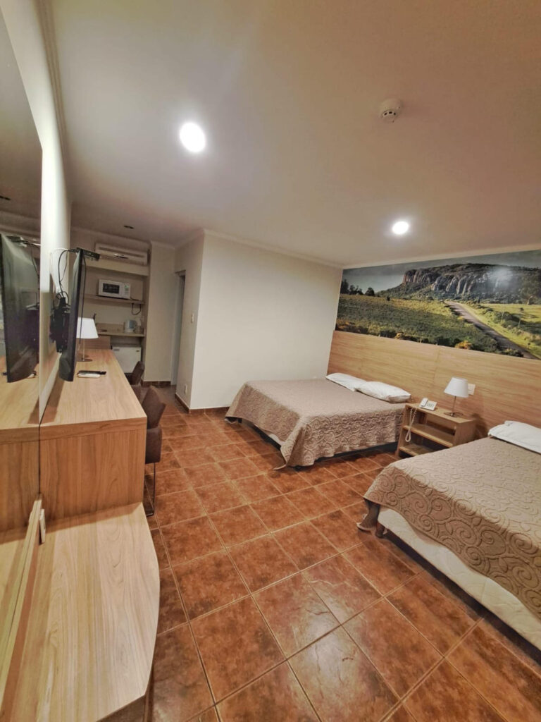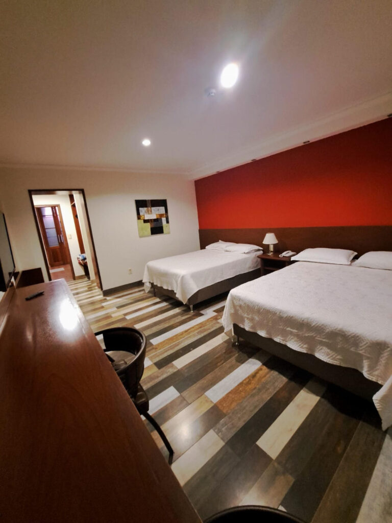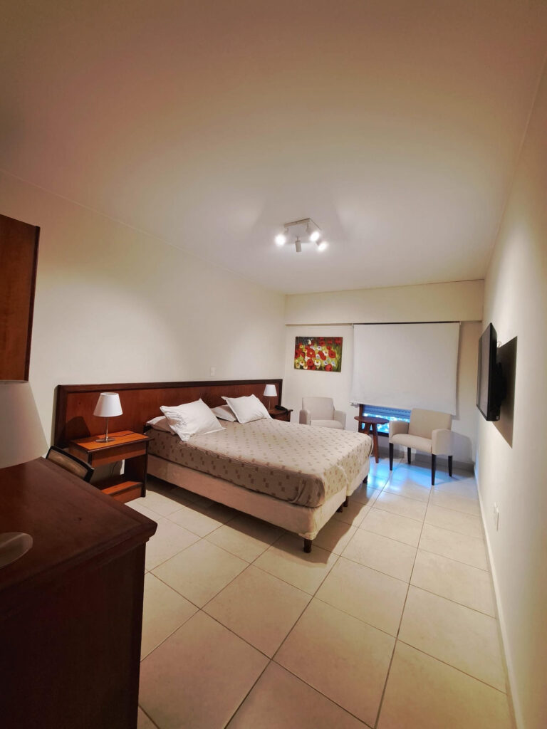Habitación de 30 a 32 mts cuadrados con Smart TV de 50″. Algunas incluyen patio interior. Ideales para matromonio o familias. Incluye dos camas matromoniales y la opción de una tercer cama adicional